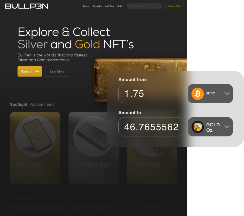 Digital asset based metals marketplace provides direct connections between precious metals producers and refiners with commercial consumers, and gold and silver enthusiasts with the BULLPEN.